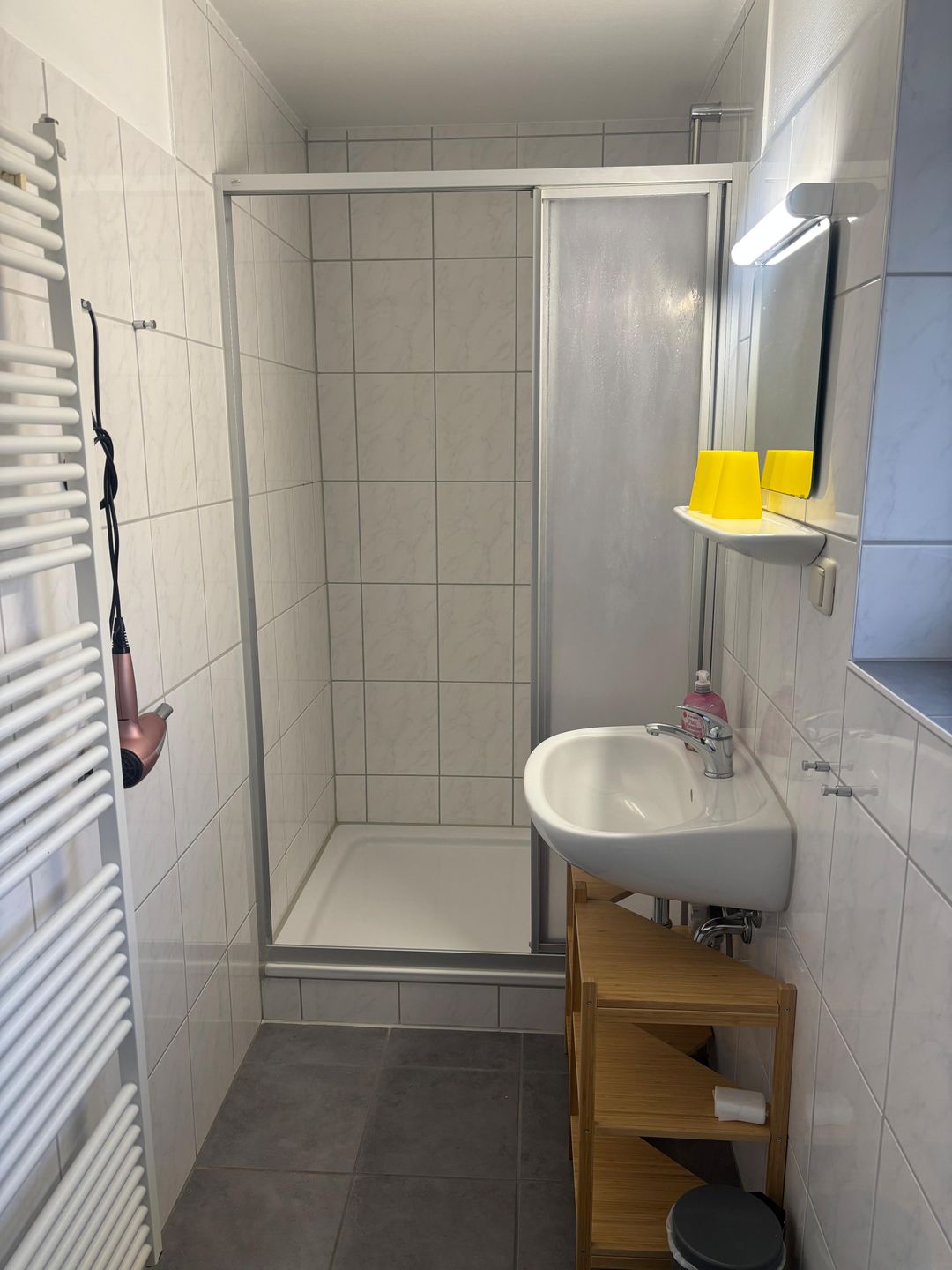 In der kleinen Wohnung war alles vorhanden was man braucht. Die kleine Terrasse war schön, den Tag mit einem Kaffee zu beginnen. Ein Parkplatz vor dem Haus war auch verfügbar. Bad war schön groß, so das man sich auch als kräftig Person gut bewegen konnte und ein guter Fön war auch da.