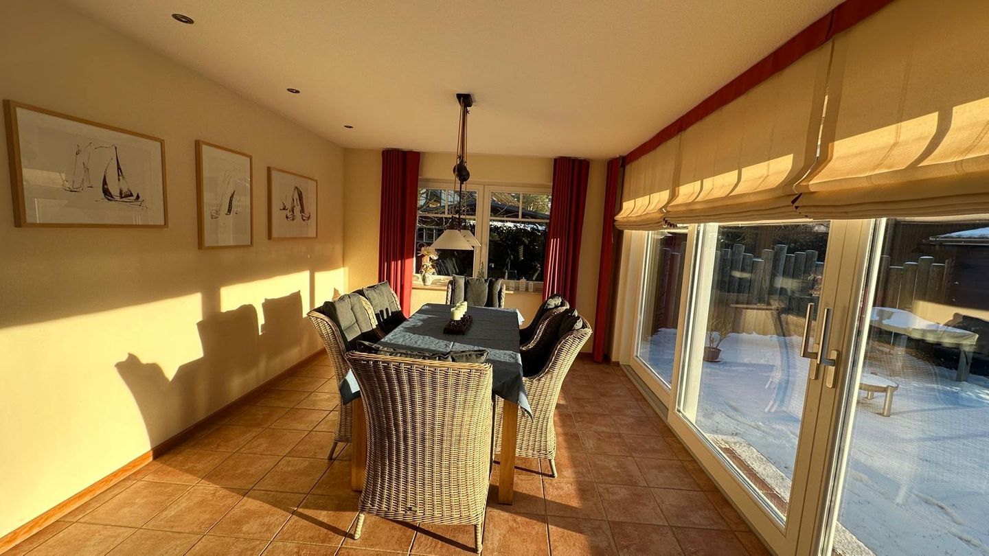 Willkommen im Haus auf dem Darß in Wieck a. Darß. Das freistehende Ferienhaus bietet auf 120 m² Wohnfläche Platz für bis zu 4 Personen und verfügt über 2 Schlafzimmer sowie 7 Zimmer insgesamt. Für Ihren Komfort stehen 2 Badezimmer zur Verfügung, darunter bodengleiche Duschen (2 Duschen) sowie zusätzlich Badewanne und WC. Die Unterkunft liegt auf einem abgeschlossenen Grundstück mit Sichtschutz für alle Fenster, sodass Sie Privatsphäre in Ihrem Aufenthalt genießen können. Die Heizung erfolgt über eine Zentralheizung mit Fußbodenheizung. Ein Kaminofen sorgt zusätzlich für gemütliche Atmosphäre. Im Wohnzimmer ist ein TV vorhanden, außerdem erwarten Sie Radio und ein WLAN mit Internet. Für entspannte Stunden sind Bücher und Spiele ebenfalls vorhanden. Der Küchenbereich ist offen zum Wohnzimmer gestaltet und bietet eine gut ausgestattete Küche mit Kühlschrank sowie Gefrierschrank und Backofen. Kochen Sie auf einem Induktionsherd, ergänzt durch Mikrowelle, und nutzen Sie die weiteren Annehmlichkeiten wie Spülmaschine, Wasserkocher, Toaster und einen Kaffeevollautomaten. Gewürze, Geschirr und Besteck sowie Küchenutensilien sind vorhanden, sodass Sie Mahlzeiten ganz entspannt zubereiten können. Haushaltsunterstützung ist ebenfalls gegeben: Waschmaschine, Trockner sowie Bügeleisen und Bügelbrett, Wäscheständer, Staubsauger und ein Schuhschrank gehören zur Ausstattung. Für den Außenbereich lädt die Terrasse ein, und der Garten bietet eine Liegewiese mit Sonnenliegen sowie Gartenmöbel zum Verweilen. Ein Grill ist vorhanden. Auf dem Privatparkplatz stehen 2 Parkplätze direkt zur Verfügung. Für Familien mit kleinen Gästen sind 1 Babybett und 1 Kinderhochstuhl vorhanden; Kinderspielzeug ist ebenfalls verfügbar. Wenn Sie ein freistehendes Ferienhaus mit durchdachter Ausstattung, Terrasse, Garten und Kaminofen in ruhiger Privatsphäre suchen, ist das Haus auf dem Darß eine passende Wahl. Sichern Sie sich Ihren Aufenthalt.