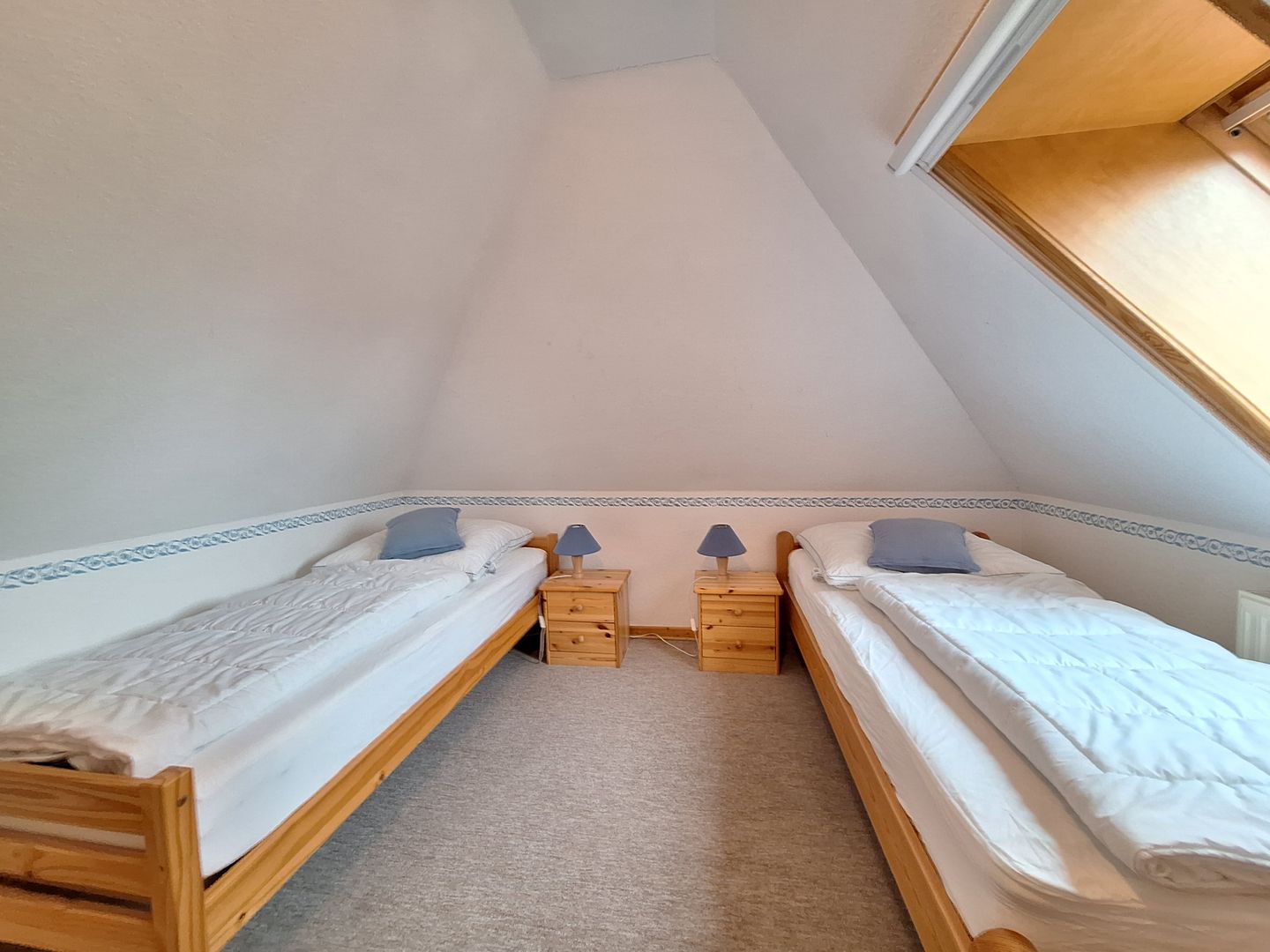 Das Schlafzimmer ist mit zwei bequemen Einzelbetten ausgestattet; das Fenster lässt sich vollständig verdunkeln und ist mit Mückenschutz versehen. Das moderne Badezimmer verfügt über Dusche und WC.
