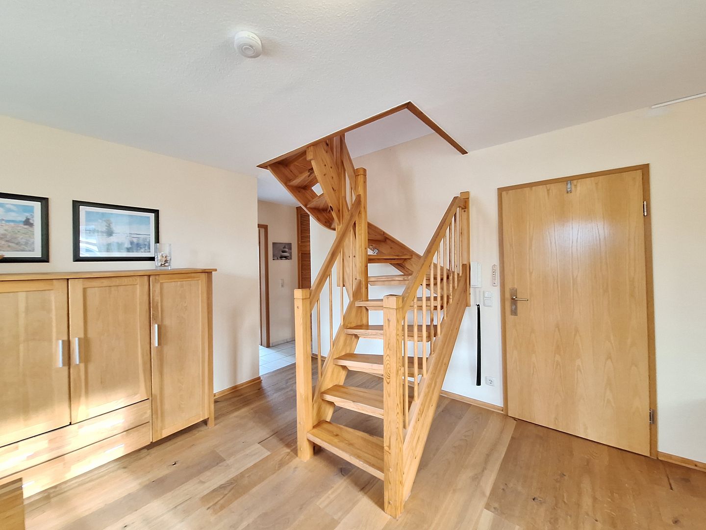 Zur Wohnung gehört ein eigener PKW-Stellplatz, ein abschließbarer Fahrradschuppen sowie ein gemütlicher Sitzplatz im Garten vor dem Haus, der zum Entspannen im Freien einlädt.
