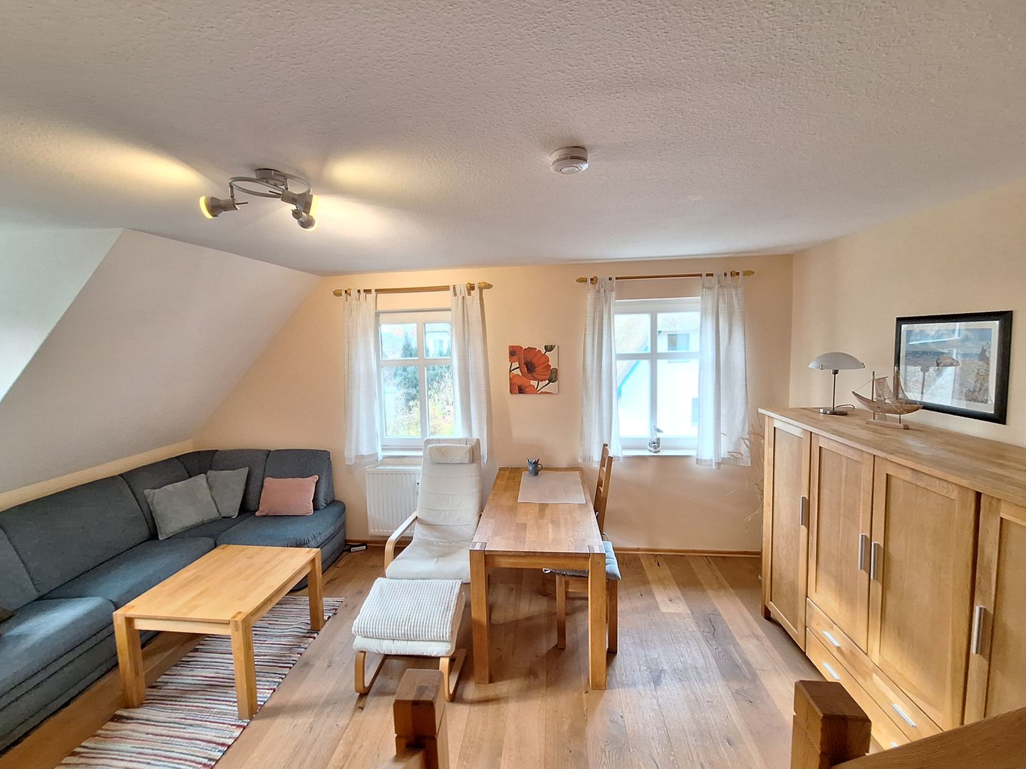 In der gemütlichen Ferienwohnung „Mansarde“ wohnen Sie sehr ruhig und nur etwa 150 m Luftlinie vom idyllischen Boddengewässer entfernt. Die Lage ist ideal für Naturliebhaber und Aktivurlauber, denn von hier aus starten Sie direkt zu Fahrradtouren durch den wunderschönen Darßer Urwald oder zu Spaziergängen entlang der Boddenküste.